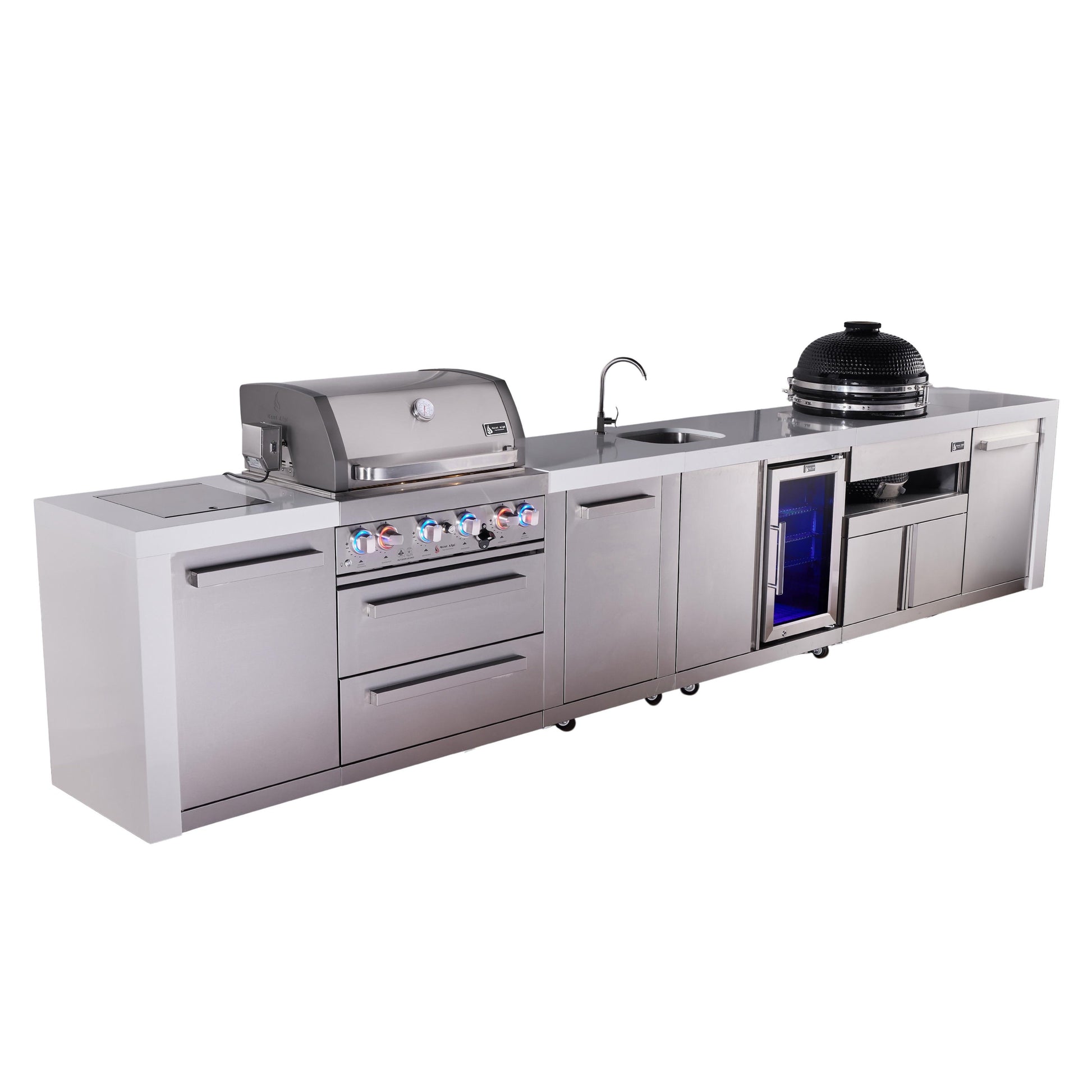 Mont Alpi 400 Deluxe BBQ Grill Island with Beverage Center, Kamado Module & Extra Storage - MAi400-DBEVKAMXL