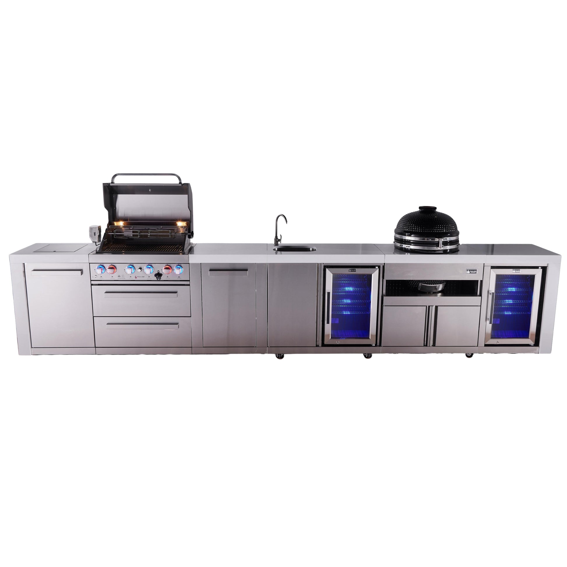 Mont Alpi 400 Deluxe BBQ Grill Island with Beverage Center, Kamado Grill Module, Extra Storage & Fridge - MAi400-DBEVFCKAMXL