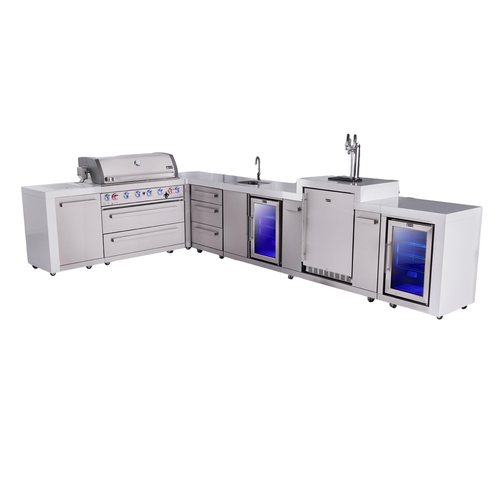 Mont Alpi 805 Deluxe BBQ Grill Island with L-Shape, Beverage Center, Kegerator, Extra Drawer Storage & Fridge - MAi805-D90KEGBEVFCDR