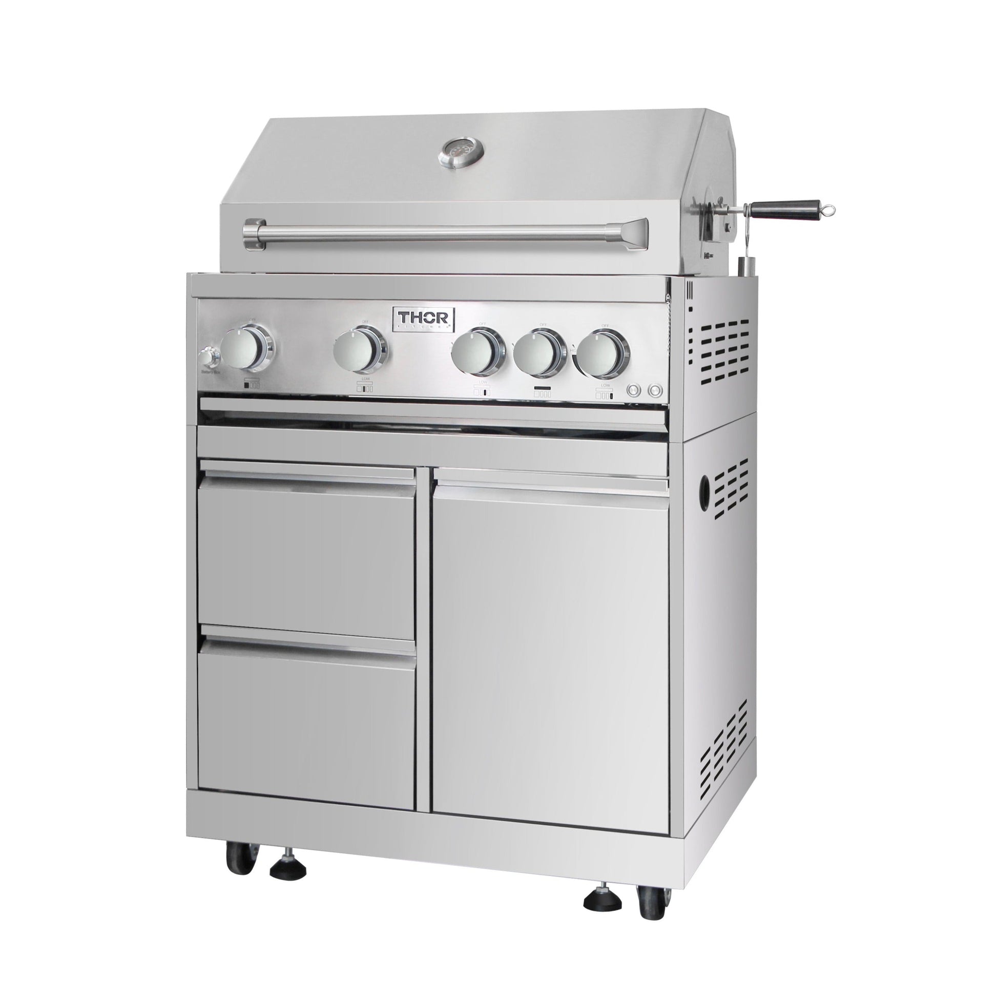 - Complete The Suite. BBQ grill cabinet complements and fits seamlessly with the other pieces of THOR Kitchen’s modular outdoor kitchen suite Liquid Propane or Natural